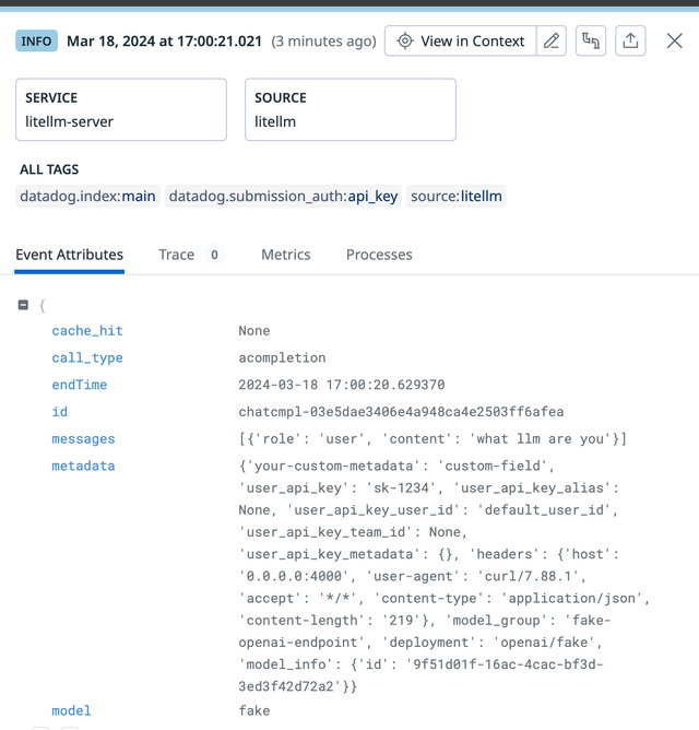 callbacks: ["datadog"] # logs llm success + failure logs on datadog